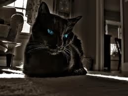 The cat jumped off the table and walked over to me. Wow, it was big. And black. And wow, those were some freaky blue eyes for a cat. It rubbed against my leg, head-butted me—okay, I felt that—then made its way to the den and the fireplace. “Meow!” The cat made a couple of circles, tail held high—hello, that was a rather large set of balls—stretched, then dropped down on a small rug in front of the hearth.“Guess I’m not the only one who likes the fire, huh?” I sat and reached my hand out, letting it sniff me. I heard that was the thing to do if you didn’t want to get torn up. The only scratches I was interested in were those made by a lover.After I passed that test, I tentatively ran my hand down its back. “Your fur’s soft. I wonder who you belong to, boy.”I petted him, enjoying the heat from the fire and the unique scent of burning wood. Purring reached me. Man, he sounded like a damn truck engine I used to have. Really loud and growly. I liked it. We sat there, me petting and him purring, until I got tired.“Okay, cat, I have to put the groceries up since I left them on the damn counter. And ah shit, better see if I got anything you can use for a litter box.” I scratched my head again. Rolling my eyes at myself, I stomped to the kitchen. “Jesus fuck, am I really talking about a litter box?” The cat followed me. He jumped on the counter and pawed at one of the plastic bags. I slipped my finger under the bag and made it rattle… and neatly lost a finger when the cat swiped at it. “Whoa!” News flash—it wasn’t declawed.“Rawl.” The cat went after the bag again, batting at the plastic, jumping and pouncing… and having entirely too much fun mauling it. Bloodthirsty thing.It was kind of funny, though. The plastic made an odd sound and the cat jumped back, fuzzed up, and hissed. Damn. I caught myself snorting out a laugh and the cat stared at me strangely. Could cats give strange looks? I’d swear this one just did.More importantly, when was the last time I truly laughed? “Okay, Tiger, you killed the big, bad plastic bag, now how about backing off. I need to unpack the food without losing a limb.”A yowl greeted that statement, but the cat backed off and sat down.“I guess I shouldn’t let you on the counters, huh? Never had a cat before.” I put up the stuff I bought. I found an old bowl, filled it with water, and set it on the floor. Then I opened a can of tuna. “Meow, meeeow, meeooow.”I laughed at the big, black ball of purring kitty that was trying to knock me down. I grabbed a small plate and dumped the contents on it. “Well, I think we have a winner. Smells good, huh?”The purring was impressive.I managed to get the bowl to the floor and he attacked it with a vengeance. Wow, someone was hungry. While he ate, I fixed myself a ham and cheese sandwich. Looked like the cat and I were going to ring in the New Year together.The pic wasn't part of the prompts, I added it. :)~M