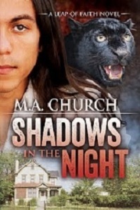 Shadows in the Night - A Leap of Faith NovelHow the hell was he supposed to get this animal out of his house? Especially since it acted as if it wasn’t ready to leave. Not that it mattered; he was not opening the door right now, not with whatever else was out there. Chip rested his hand on his chin. And what was the scent? He had smelled it earlier when the big cat crowded him into the front door. It reminded him of another scent, but his scrambled mind couldn’t place where he’d smelled it.