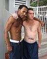 Keyno tied my hands by my sides while Ti unlocked Colt from the spreader bars. Colt turned around. As soon as he saw my legs tied apart and my hole so open and vulnerable he grabbed Ti around the shoulders.