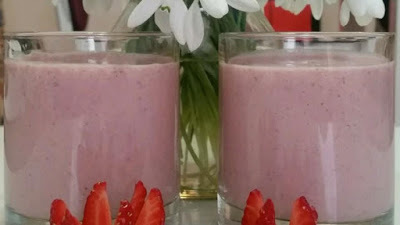 Ingredients1 cup soy milk1/2 cup rolled oats 1 banana, broken into chunks 14 frozen strawberries 1/2 teaspoon vanilla extract 1 1/2 teaspoons white sugar