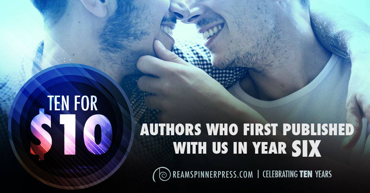 Celebrating Year 6 authors with 10 eBooks for $1 each until May 26 at 11:59 PM ET. Titles by Eli Easton, Brandon Witt, Skylar Cates, Lex Chase, Cate Ashwood, MA Church, Charlie Cochet, Grace R. Duncan, Con Riley, j. leigh bailey http://bit.ly/2rF8ZMT