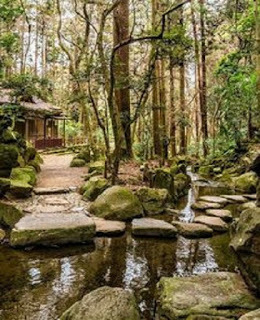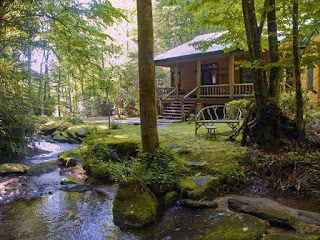 Home: There’s a stream in front of his log cabin