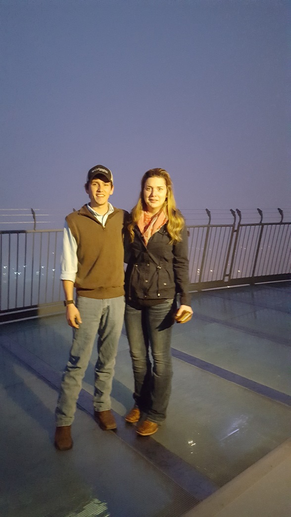 Okay, she'll probably kill me for posting that lol. We're on the observation deck, looking out over the skyline. Do you see you what they're standing on? That's actually clear glass. It was so foggy it looked opaque, but normally you can see straight down. LOL, can you guess how she felt about standing on that? :)