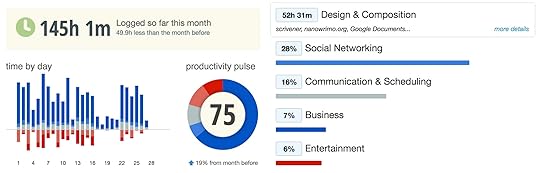 Below is a snapshot from this last month. I hovered over “Design & Composition” so you can see my top activities under Design & Composition were Scrivener, NaNoWriMo.org and Google Documents.