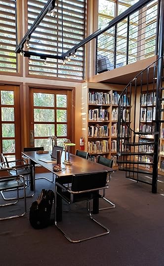 In early December, as part of UCF’s MFA winter retreat, I headed to the Atlantic Center for the Arts. As I explained previously, the ACA is an artist retreat with creative studios for many different disciplines, including writing. While I was there, I had access to the Writing Studio and Library (pictured), as well as my private room and a cottage with a kitchen and dining area. It turned out that due to the retreat dates conflicting with school schedules, I was the only writer in residence the few days I was there (also pictured). Which worked out well for me! (I enjoy a dollop of solitude and writing in the quiet.)