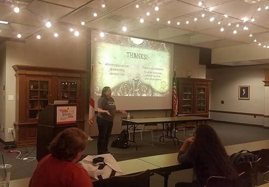 The next stop in my writerly education was the Central Florida Inklings where I hosted Saritza Hernandez, Senior Literary Agent at Corvisiero Literary Agency. Saritza talked to my writing group about preparing your manuscript for submission to a literary agent or publisher and shared tips for writing a query letter and synopsis. Saritza broke down the need for a literary agent (even for self-published authors) and clearly described what will encourage an agent to keep reading your submission. She also talked about ways to research the market, giving me a few additional ideas to work into my process.