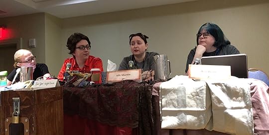 I spent Saturday night camped out in the Alternate & Historical Fiction Track learning about the history of séances and phony psychics, pirates, and women in history. I have a long list of books to add to the TBR pile and a renewed itch to work on Gay Airship Pirates. Nothing is more inspirational than listening to how other authors worked through the same problems that are plaguing me.