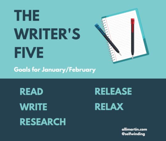 What is The Semi-Monthly Writer’s Five? It’s five things I should be able to do in about a month that will contribute to my long-term writing goals. I will be centering these goals around the verbs “read,” “write,” “research,” “release,” and “relax.” (Did I stretch to make these all R-sounds? Yes.)