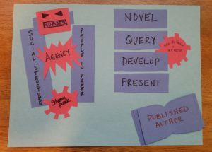 In mid-March my friend ran a mini-workshop on branding for myself and two other author friends. In addition to getting away for the weekend and spending entirely too much time browsing through the rooms and rooms of used books at Chamblin Bookmine, we discussed who we each are as authors, helped refine brand statements, and created vision boards to help guide our individual progress. (Spider-Man and Into the Spider-Verse sneaked into my vision board when I realized my cog looked more like a spider-logo—still on brand.)