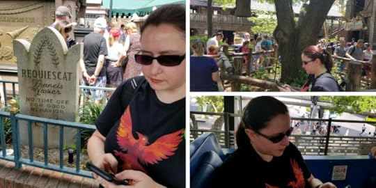 Finding the time to write while we were in the park was a balance between knowing we’d have long wait times for ride queues and not being rude to my friends. I waited until the conversation lulled, or when everyone else seemed equally distracted (or exhausted) before pulling out my phone to write. Because I had thought about the scene beforehand, it was easier to turn a handful of disjointed minutes into productive writing time. In the end I wrote 387 words while at Disney, which is not a staggering amount—I didn’t even finish writing the scene—but my writing streak is in tact and I like some of the ideas that presented themselves in that land of distraction. (Also I will always think it’s funny to write on theme park rides.)