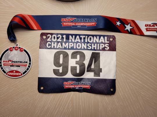 It was a "podium" finish. But unfortunately they don't a podium in the Covid Era. But still I'm very pleased and now I must do a bunch of stretching exercises so I can be ready for tomorrow's draft-legal sprint duathlon (It's half the distance and we can draft on other bikes.)