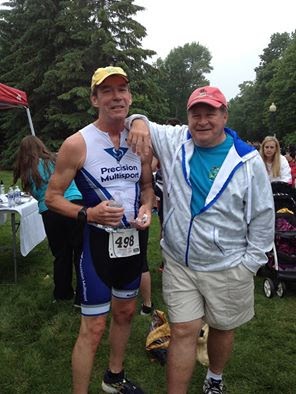 After the race with Dan CootsOn Saturday I competed in my third Elkhart Lake Triathlon. It is a great venue for an Olympic Tri. It is located at the Osthoff Resort on Elkhart Lake in Wisconsin. It's spectator friendly, the lake, at least the last three years, has been smooth and reasonably warm and the bike and run courses are scenic and offer some nice hill challenges, which we don't always get in Illinois.