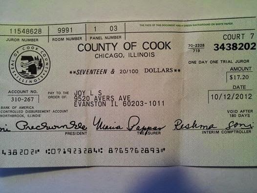 But my work schedule these days is more flexible and I wouldn’t mind serving on a jury in Skokie or even in the Loop. The notice indicates I’ve been drafted for criminal court on the southwest side, thirty miles from home. When I call in the day before, a recording tells me that if my last name starts with the letter D through M, then they want me. So I cancel my Friday activities – spin class and a personal training workout – and figure out when I need to leave the house to make it to the courtroom by 9:30 a.m.