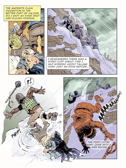 But what I really wanted to talk about is Lemire's artwork. It's probably impolitic of me even to mention this, but I'm not really a huge comic book fan. More on this later, but suffice to say I read a lot of comics as a kid, but I never had a superhero collection. And I have read quite a few comics and graphic novels since, and enjoyed some, but mostly it is the artwork that draws me to them, with Euro comics being my favourites. Most of my reading is traditional novels.
