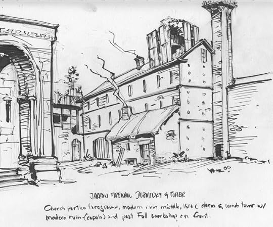 I was leafing through some of my old sketch books the other day and found some of my early sketches and notes for Secrets of Jarrow. These aren't the earliest but rather some I created when I returned to working on the book a few years after I had first played around with the idea.