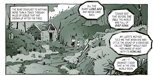 Crow and Podd ruminate about a long lost world in Book 2, due out next spring. I would miss my pond of peepers outside!I can't pretend that Mordecai's world is in anyway an accurate portrayal of a world ravaged by climate change. Things like summer snow storms and flooded cities are mostly just new ways of changing things up in the narrative, but I have loved the process of imagining what that world may look like. Mordecai's world is probably a gentler version of the real potential for disaster (I like drawing trees!) but with so many balls in the air - things like a possible slowing or stopping of the Gulf Stream that could plunge Europe into another ice age even while the rest of the world heats up, or a technological meltdown coupled with other disasters that could precipitously de-populate the world en masse (having the happy side effect of actually allowing us to reach our emissions targets!) - I don't feel the need to be accurate.