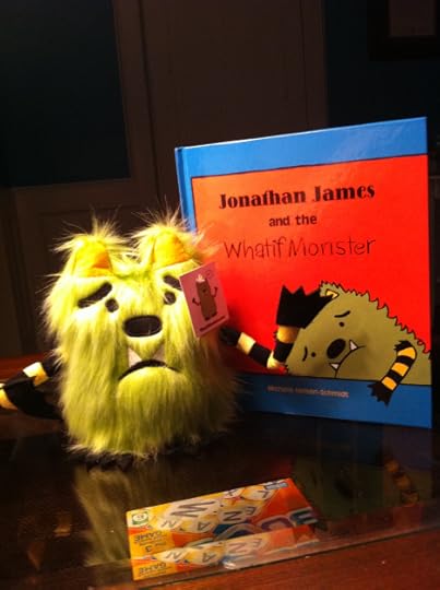 Here is the thing. I did a giveaway once before and I got burned. So while I was running on the treadmill I began to think of how else I could do it. As much as people seem to have good intentions, life gets in the way and people don’t do what they promise. (In my last giveaway I gave a Whatif Monster to some winners if they promised to take pictures of them with a handmade monster for a full week and to post them or email them to me. I got a couple pictures from one of the winners and the other one got the monster and then didn’t take one picture at all and wouldn’t even email me back. Rude.) So, because of that, I wanted to make some rules that I PROMISE you, even if you don’t win, you WILL WIN. Trust me on this, if you enter this contest, because of the rules, you will experience some AMAZINGNESS. I can promise this cross my heart and hope to…well, you know.;) So, if you want to enter to win a signed hardcover copy of Jonathan James and the Whatif Monster AND a numbered plushie version of my monster I had made with a certificate of authenticity, please read the rules: