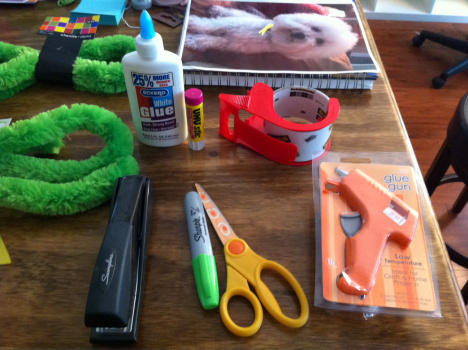 - Giant, chenille lime green (stems) pipe cleaners, available at Hobby Lobby for $2.99