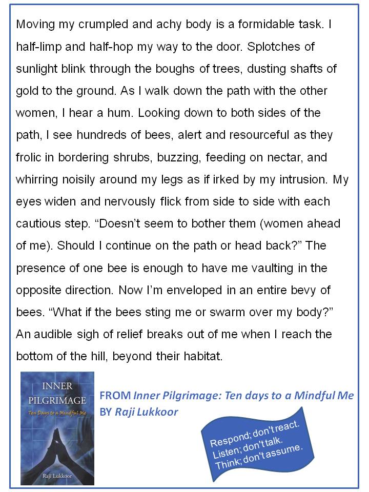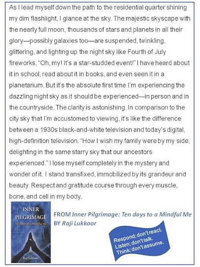 Inner Pilgrimage: Ten Days To A Mindful Me is a delightfully irreverent and totally compelling book by Raji Lukkoor about her first 10-day Vipassana course. The book is filled with rich, often funny, and very revealing details. As a Vipassana meditator myself, I cherish the honesty and humility of Raji’s account of her battle...