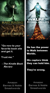One more thing. When someone clicks on your ad, you can send them straight to Amazon, or wherever your books are sold, but you might consider a landing page instead. This allows you to show something a little more compelling than the default product page, as well as give them multiple choices for how to buy. Here are the pages for Bad Radio and Walker.