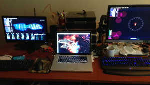 Ideally you play this together in a room, which allows for the kind of chaos and shouting that the best games bring out in people. You can also play across the internet, spawning multiple versions of the main viewscreen so that all players can see it, but I haven’t tried that yet. My guess is that it’s still a blast, providing you have voice communications to use.