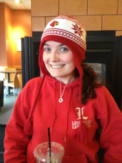 Author Heather Adkins is ready for Christmas in her sweet hat!
