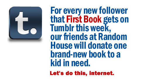 Our friends at Random House Children's Books have generously agreed to donate one brand-new book for each new follower we gain on Tumblr, Facebook, and Twitter this week. Those books will go to thousands of schools and programs serving kids from low-income families across the country.