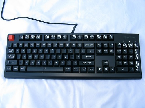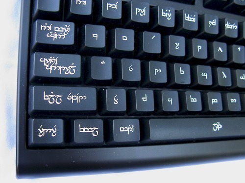 This is the project I’ve been working on. I’ve become a consulting artist for WASD keyboards, and this is my first prototype. In the next few months they will be releasing a line of Premium Keyboards for sale, which will include Tengwar (Shown, Tolkien’s invention for his various languages of the Elves) as well Gallifreyan and Hylian. In the near future I plan to also release the Ancient’s Alphabet (SG1), Vulcan, Romulan, Daedric (Elder Scrolls, Skyrim/Oblivion etc), as well as Atlantean (SGA)
