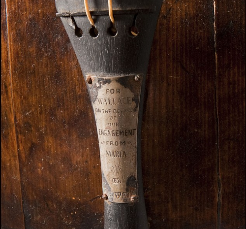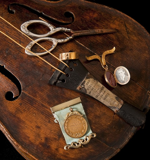 It is the instrument that he played as the ship went down in the Atlantic, and that he later used as a buoyancy aid once Titanic went down.