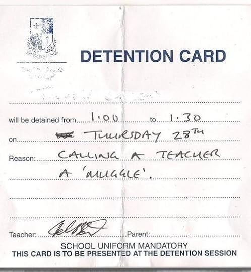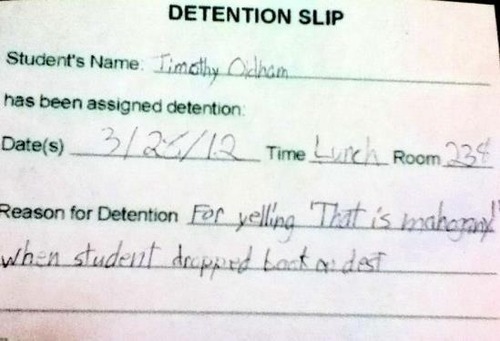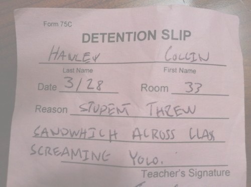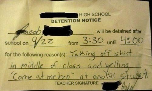 Of course the one—the ONE—detention slip among these that isn’t funny took place in Indiana. *sigh* You make it so easy for me to write my books.
