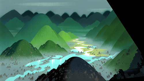 Samurai Jack background paintings by Scott Willis :: via animationbgs.blogspot.ca