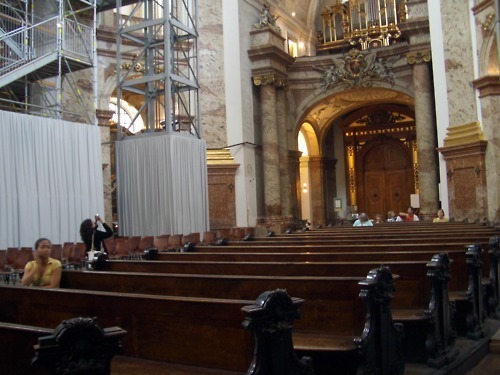 Fresco after restoration adorning the cupola inside Karlskirche.