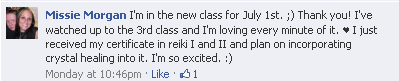 In February 2011, I felt the strong urge to learn about crystals. Before then, I just thought they were pretty stones and did not realize their healing power. I took a basic crystal healing class where we learned about a few crystals and meditated with them. The spark was lit and I then steadily progressed to learning more and starting my collection of these gorgeous healers. Then a friend shared a newsletter with me from Hibiscus Moon in early 2012 and I started thinking about becoming certified.