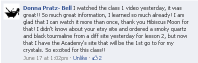 After I learned about the Hibiscus Moon certification program, I checked out many other programs, but Hibiscus Moon was far and above any of the other programs. I signed up and started my first class at the end of February 2012 and I just graduated! I felt that becoming certified would solidify my knowledge about crystals and give me the tools and expertise necessary to benefit my clients (both people and pets). I learned so much more in the class than I ever expected.