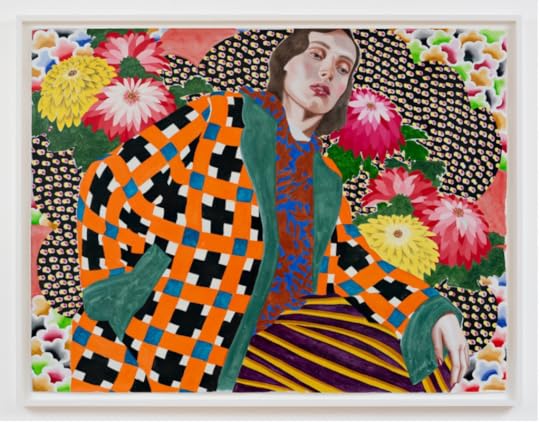 Hobbie’s paintings reflect her command of art history, engaging the traditions of Art Nouveau and Ukiyo-e, for example, and her dialogue with artists such as William Morris, Gustav Klimt, Tamara Lempicka, and Kehinde Wile. Inventions of her imagination, Hobbie’s hyper-real depictions of women are painted without models. Her patterns are original, albeit inspired by a wide range of tiles, textiles, and other ornamental abstraction.
