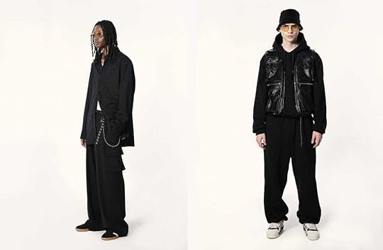 Navy Balmacaan Coats: Crafted from a premium wool blend, 9dcc’s subverted classic overcoats are the epitome of sophistication, providing a touch of classic mobster style.Black Leather Vest and Bomber Jackets: A statement of luxury and function, reinterpreting the humble utility vest but elevating it in leather. Our sleek bomber jacket is a nod to the rebellious spirit within refined elegance.Midnight Blue and Sage Green Satin Dobby Bombers: These water-repellent bombers shine in lustrous midnight blue and sage green, offering a perfect luxury in a slouchy oversized silhouetteGlen Plaid & Pinstripe Blazers and Breakaway Pants: With meticulous tailoring and a modern twist on a classic design, these pieces redefine crypto-mob sophisticationDenim Collection: