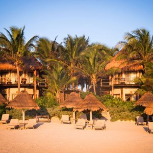 El Hotel Encantada está situado en una playa virgen entre la reserva de la biosfera de Sian Ka’an y el parque nacional de Tulum. Este hotel es un paraíso privado ideal para los más románticos. Sus elegantes cabañas con un toque bohemio se ubican en una franja pristina y tranquila de arena blanca con vistas panorámicas. Cada detalle está pensado, desde sus exuberantes cortinas blancas flotando en la brisa marina hasta un servicio adaptado a los huéspedes más internacionales. Con cálidas noches estrelladas y aguas claras color turquesa el hotel es la elección natural para los más hedonistas. Además, este es el sitio más fotogénico de la región y, quizá, del país entero.