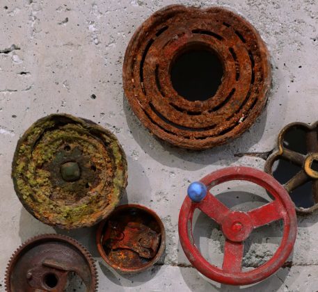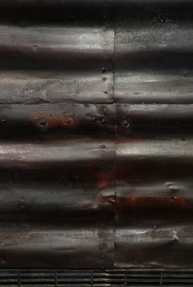 Las piezas siguen la línea de recuperación de objetos que ha marcado el trabajo reciente de la artista. Una piel de hierro del veinte metros de largo recorre con elegancia todo el perímetro de una de las salas. Una chapa oxidada de cuatro metros pintada, que genera el efecto de un paisaje. Y las salas de la “Domus” girando en torno a un jardín de basura coloreada que invade el espacio central del patio con dieciséis metros cuadrados de redes de metal, donde quedaron atrapados cientos de colillas de cigarro, plástico teñido y pequeños objetos cotidianos de desecho, sobre los que los visitantes pueden deambular.