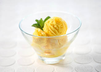 Mix the ice cream, cardamom powder, and mango pulp in a bowl.Cover and freeze for an hour.Scoop into individual dessert bowls and top with chopped mangos.Chocolate Sandesh