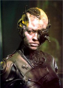 The Borg is today’s villain of renown and, if you don’t know them, relax, it’s alright, Wikipedia is my sidekick on this post. We first saw the Borg in a Star Trek: The Next Generation episode when a godlike character named Q took Picard and his intrepid group of travelers to the ass-end of space just so they could get the Federation shit slapped out of them by the Borg. And it was just to prove that the Enterprise and her crew weren’t as raw as they thought they were.