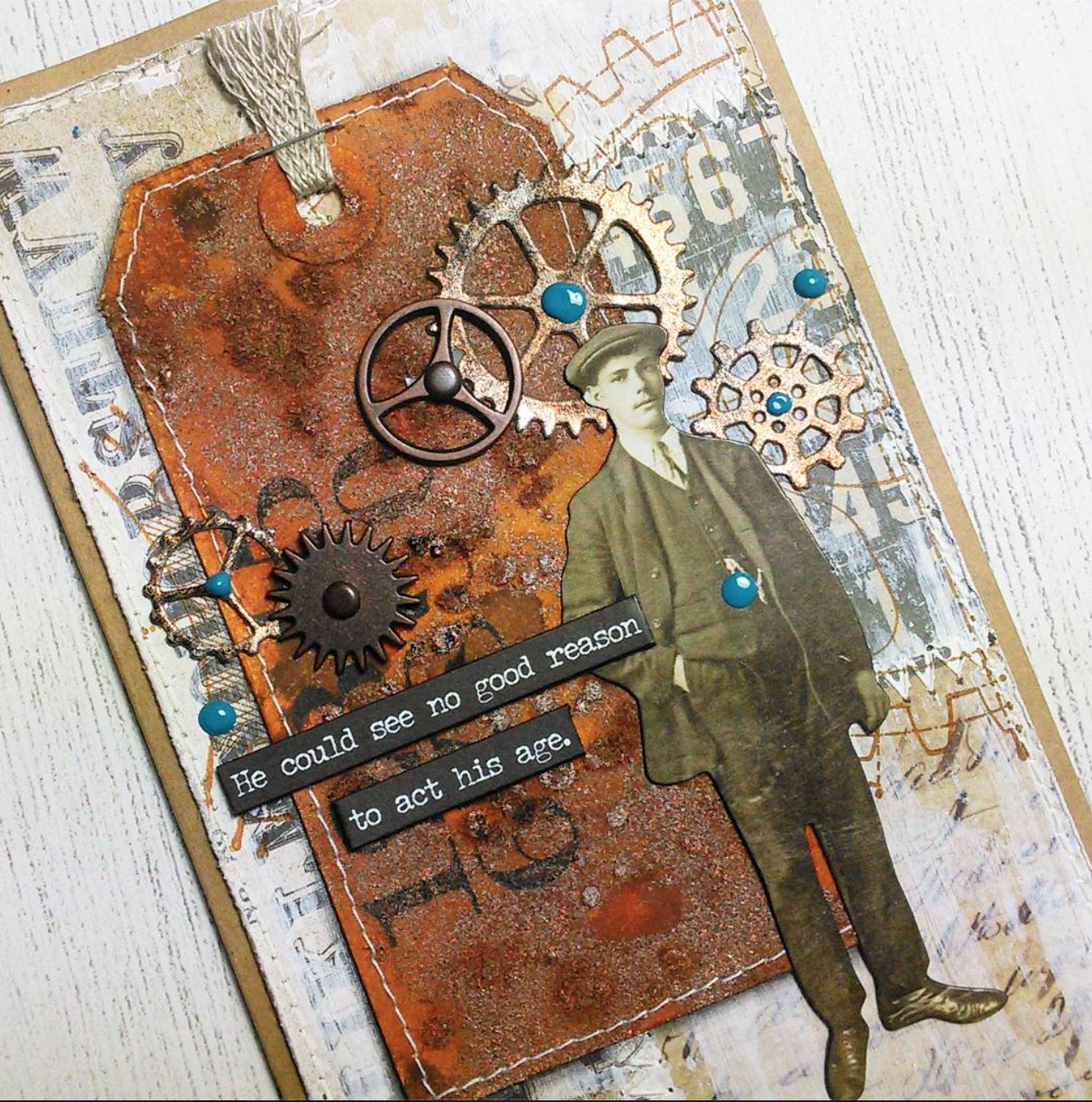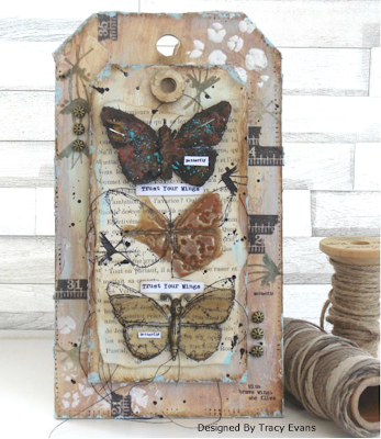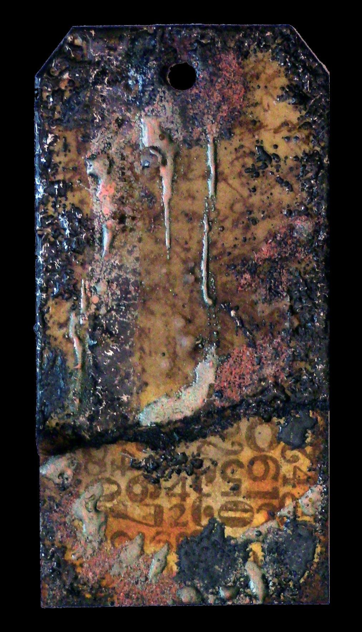 Jenny used Chunky Rust to create this textural tag. And in the technique video that follows, she shows how to use Tim Holtz's new Distress Resist Spray to create the effect.