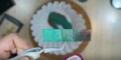 These powders can be used in the traditional way - stamping with an embossing pad. But they were designed for so much more, including mixed media techniques, surface texture, and faux encaustics.