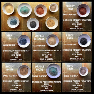 It has been so exciting to see what all you creative people out there are doing with Baked Texture, my new embossing powder for artists from Emerald Creek. My hope with these powders was that people would find non-traditional ways to use them. And you haven't disappointed. Here are some of the beauties I have come across online this week. Click each link to see more...