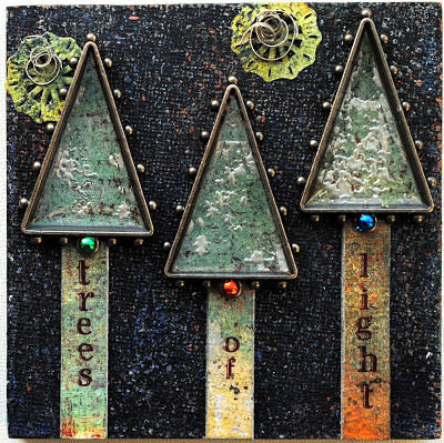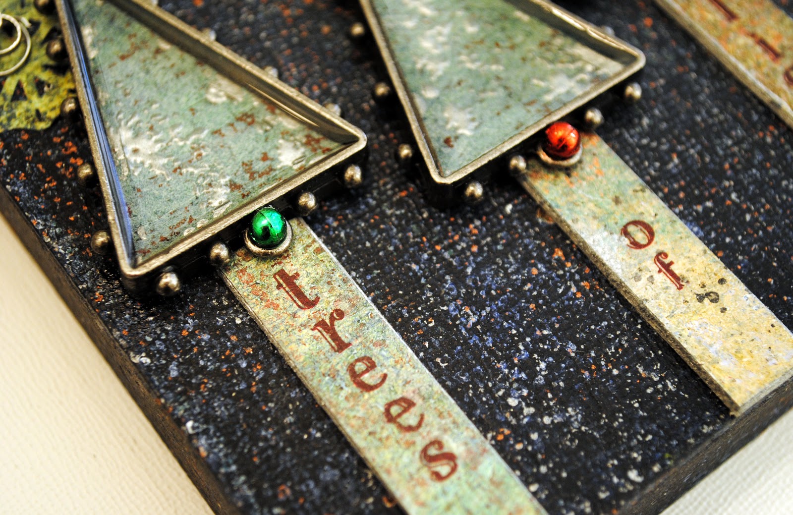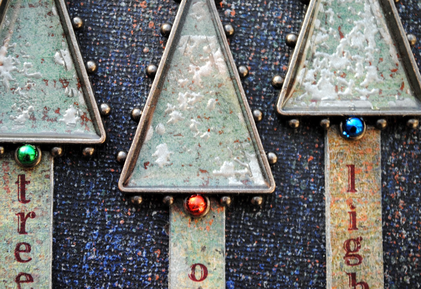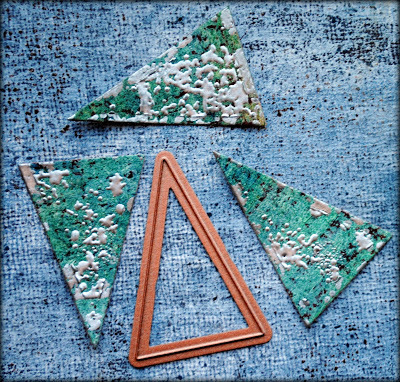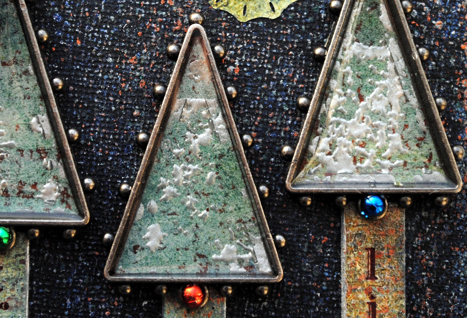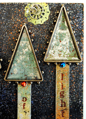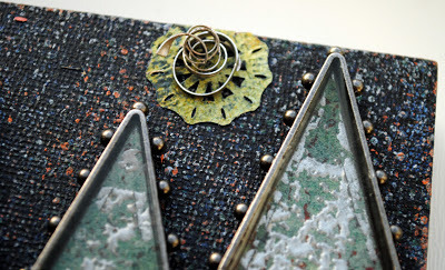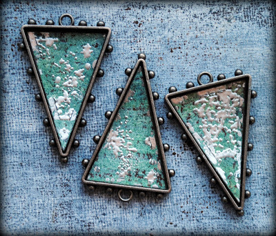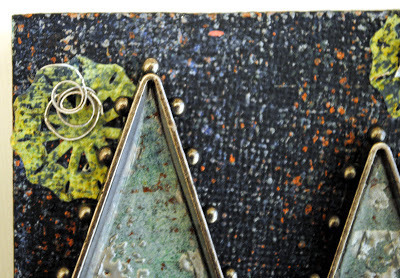 Rummaging through my supply of bezels from Spellbinders new Media MixageTM line, I selected three of the medium triangle bezels with hobnails around the edge.