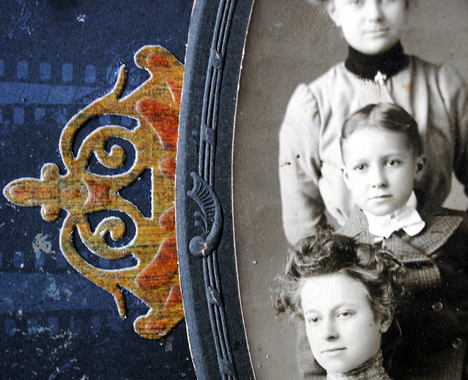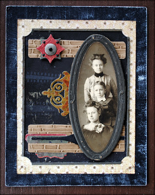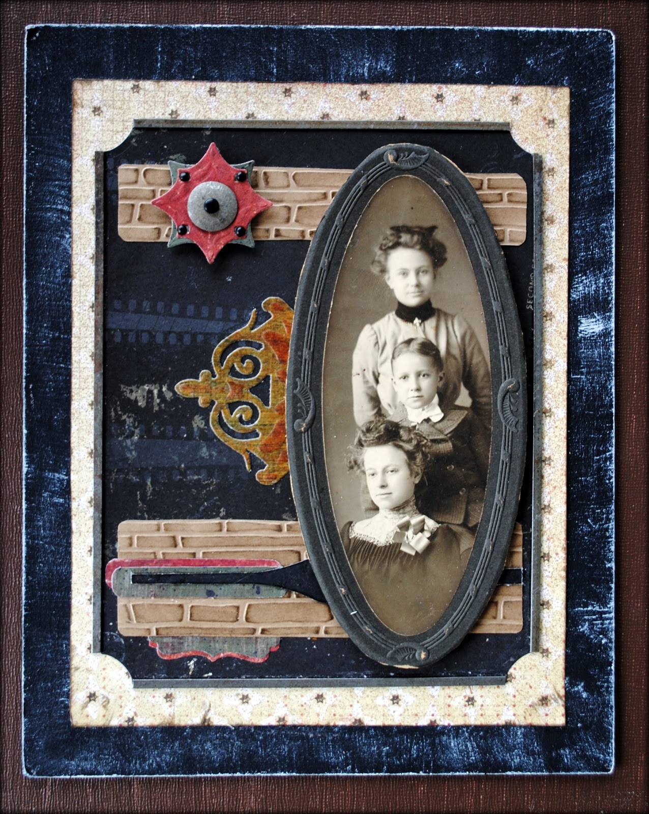 I am often inspired by a single object and find myself building an entire artwork around it. That was the case with this vintage photo, complete with a rather ornate, paper frame. It has been in my stash for too many years to count. The sepia tones in the image called to me today.