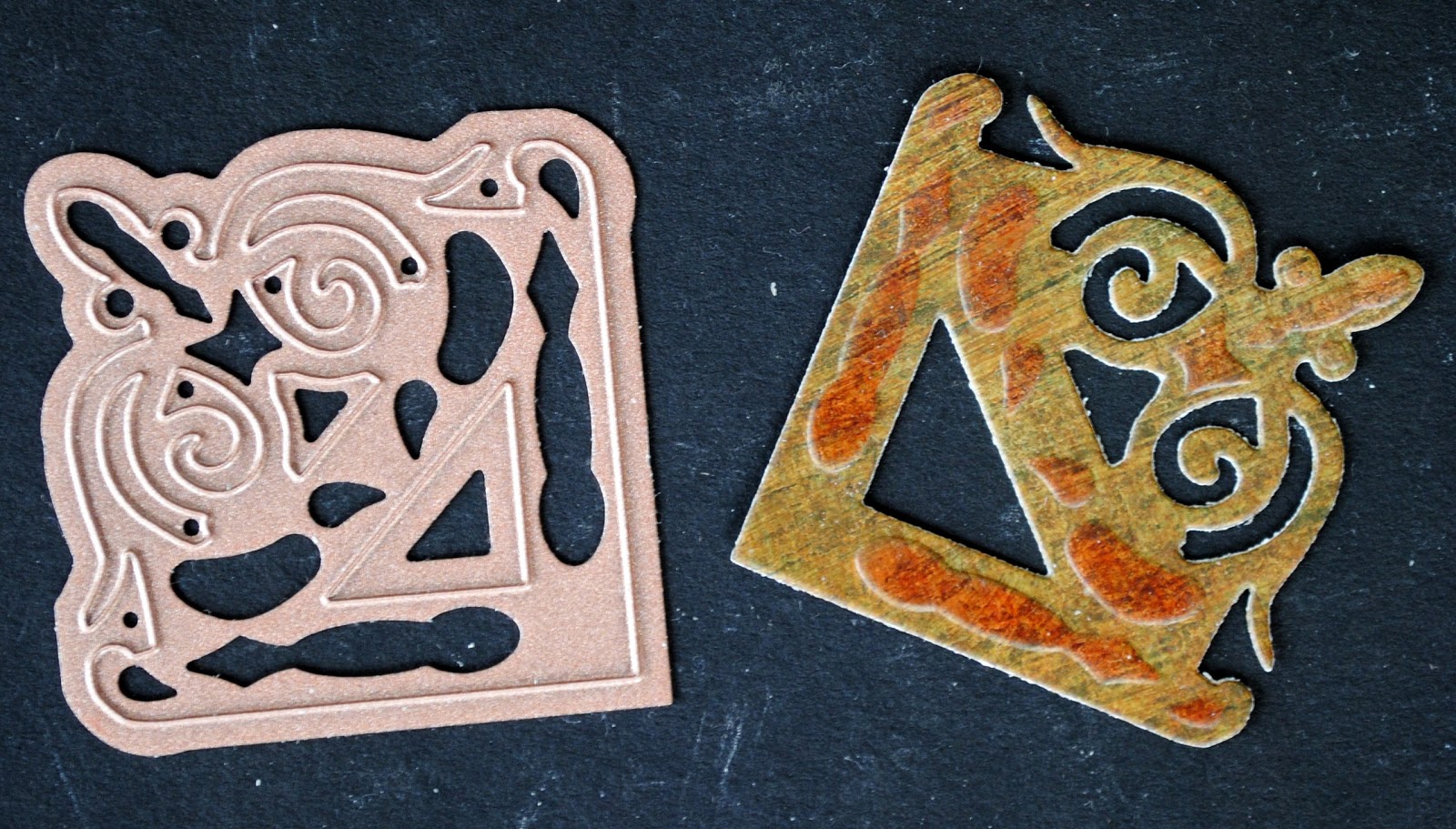 For one more detail and added dimension, I twisted thin strips of metal into spiral shapes to add to the die cuts.