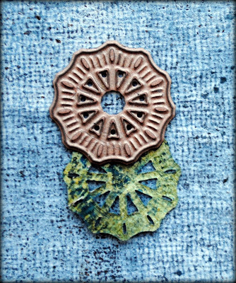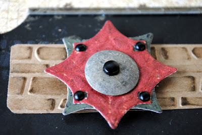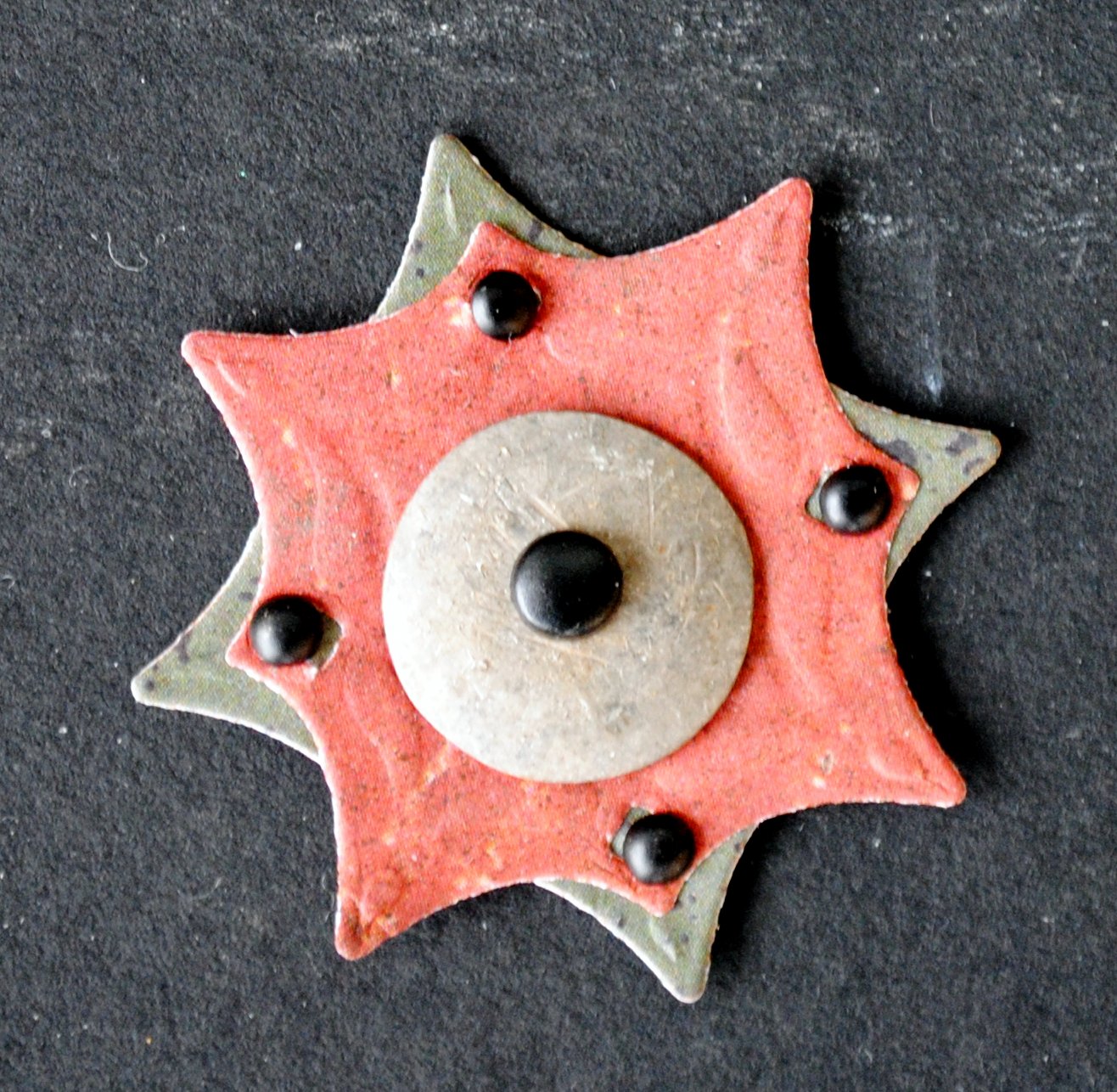 I then layered the die cuts and, to make this more unique, added brads and a circular found object.