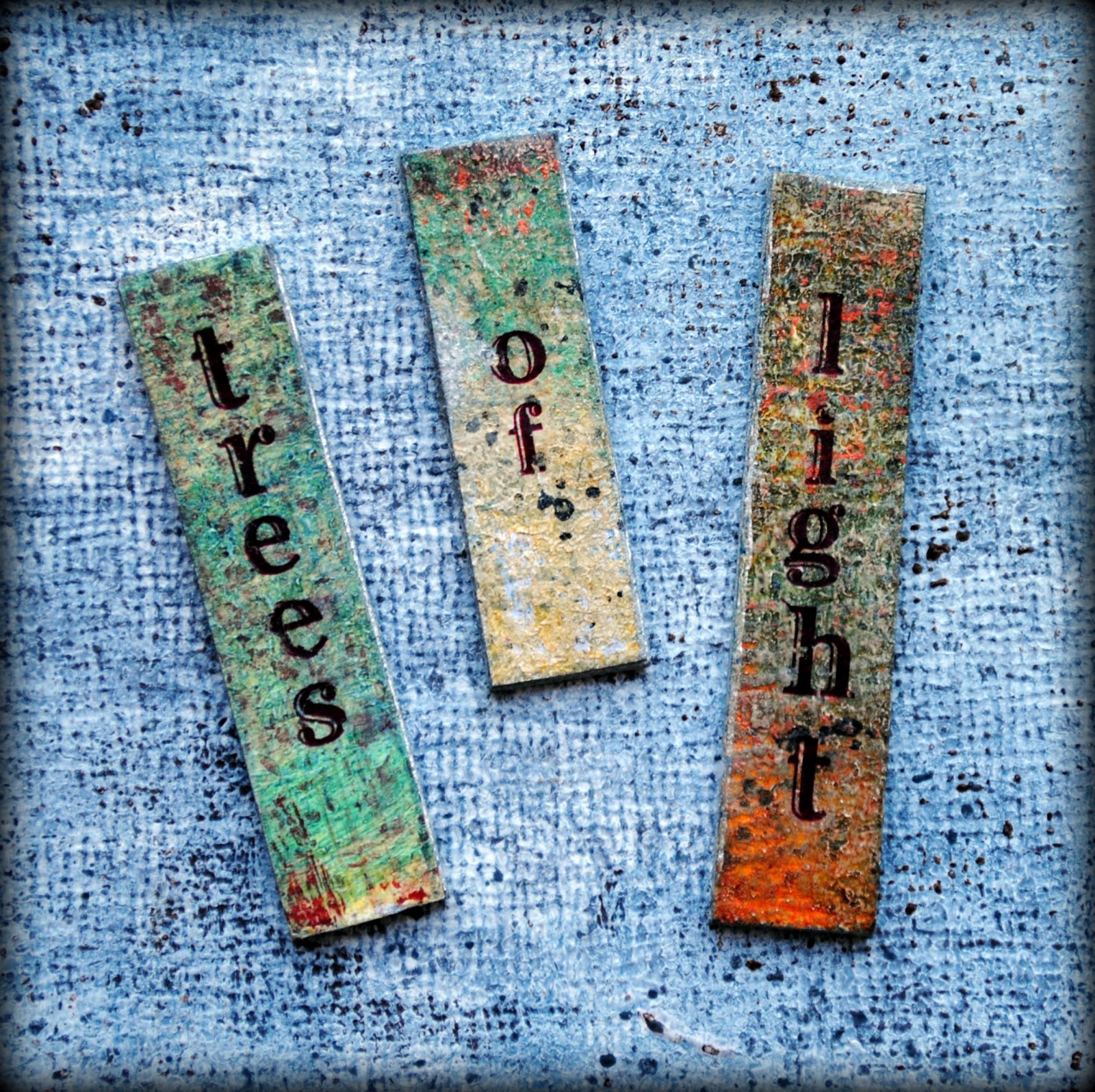 To complete these pieces, I used rub on letters to write my text -- trees of light.