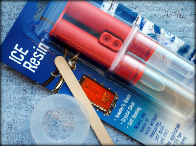 I filled each bezel with Ice Resin, following the easy instructions on the package. I left these pieces aside for most of the day as it takes from 6-12 hours to fully dry. As the final detail, I glued small, metallic beads - a different color for each bezel - to the attached rings at the base of each triangle.
