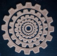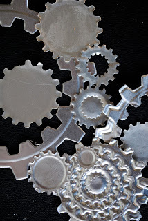 Using an assortment of plain or embossed cardstock and Craft Foil and sheets of Aluminum Metal, cut out assorted shapes in all sizes using the Cogs, Standard Circles, and Crown Circles dies.